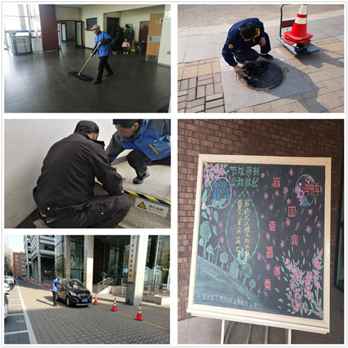 保洁方面,物业安排保洁人员提前对赏花路线中的重要楼宇周边加强保洁力度,例如清洗会议楼前景观水池;对重点楼宇的环境卫生进行彻底清洁。节日当天物业增加保洁人员,同时加强巡查、增加保洁频次,确保室内外环境卫生整洁。
