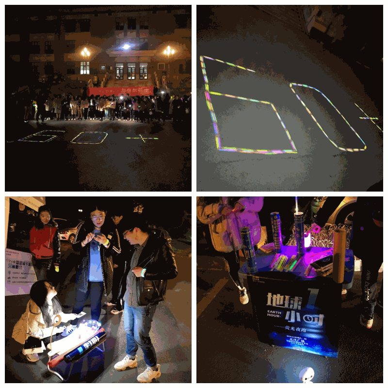 卫津路校区,后勤保障部能源管理科和管理与经济学部青年志愿者协会共同举办“地球一小时·荧光夜跑”活动。参与者在活动开始时领取任务明信片和荧光手环,根据工作人员的提示,跑步前往5个任务点答题通关,所设置的题目皆与节能知识相关。5个点位任务全部完成的同学在9楼前广场用荧光手环摆放成“60+”图案。之后,伴随着一声发令,组织者与参与者排成两排,整齐的摆动着荧光手环,围绕敬业湖夜跑一周,手环的荧光在夜色中形成一道亮丽的风景线,吸引了许多师生驻足观看。