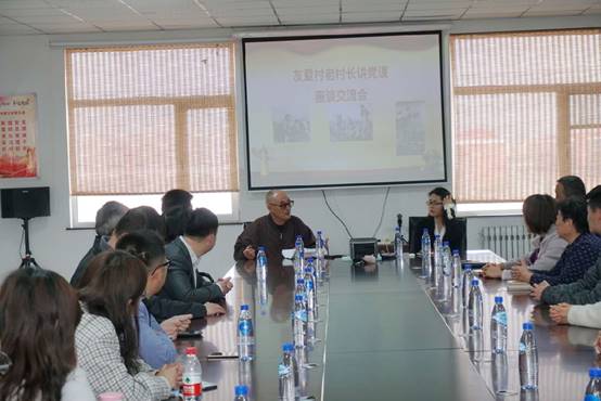 太平镇友爱村75岁的老村长石俊明讲授党课,讲述了六十多年来,在共产党的带领下,友爱村开荒建村和逐渐发展的奋斗历史。1956年,河北省委派出1183名共青团员、入党积极分子和共产党员组建开荒队,奔赴友爱村所在地开荒。面对一望无际的荒野,开荒队的共产党员带领“青年突击队”用芦苇搭窝棚、喝生水、吃咸菜,在恶劣的自然环境下不抛弃、不放弃,终于逐步迎来了1962年的大丰收。然而天有不测风云,1963年,友爱村惨遭洪涝灾害,7年的建设成果付之东流,村民们又经历了一番艰苦卓绝的奋斗,重新建设友爱村。老村长几度落泪,在座的听众更是纷纷红了眼睛。老村长说:“友爱村的发展目标是‘绿水青山无污染、瓜果满园、蔬菜满棚’,只有听党话、跟党走,才能创造幸福生活、振兴农村”。