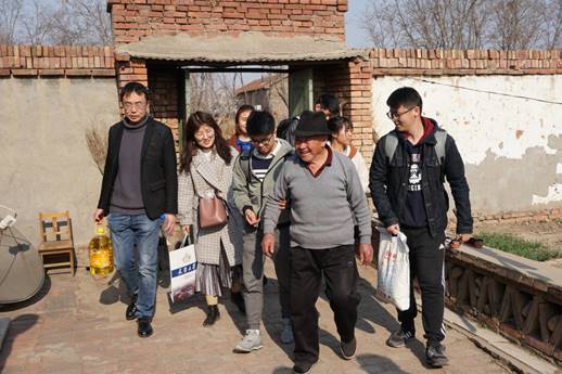 座谈结束之后,天津大学求是学部教工党支部、招标办党支部为友爱村农村书屋赠书,党员们分两队前往当年开荒建村的“青年突击队”家里慰问。老人们非常激动,向同志们讲起了过去的故事,欢迎大家常来友爱村做客,期待大家为友爱村的发展增砖添瓦!