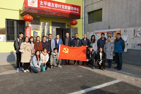 本站讯(通讯员 胡胜楠)2019年3月29日下午,天津大学求是学部教工党支部、招标办党支部和部分学生党员代表,前往滨海新区太平镇友爱村,与友爱村第一、第二党支部开展主题为“探寻青年担当,落实为民服务”的党日活动。天津大学招投标管理办公室副主任吴迎新、天津大学求是学部党委副书记王玮、太平镇党建办主任刘松霞、副主任王寒梅、友爱村党总支书记张双全等同志参加活动。