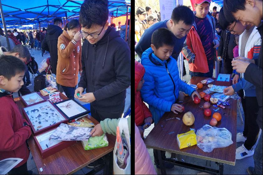在生命学院科协摊位前,学院展出了海棠花装饰品及部分海洋生物标本,组织与生物知识相关的猜谜游戏、水果电池制作等活动,吸引了众多游客前来互动参与。同学们协助参与者完成游戏,并耐心地讲解专业知识方面,让参与者学有所获,乐在其中。这些多彩的活动引导参与者走进自然科学,为他们展示了宏观世界里丰富多彩的生物,吸引了众多游客前来参与,反响十分热烈。