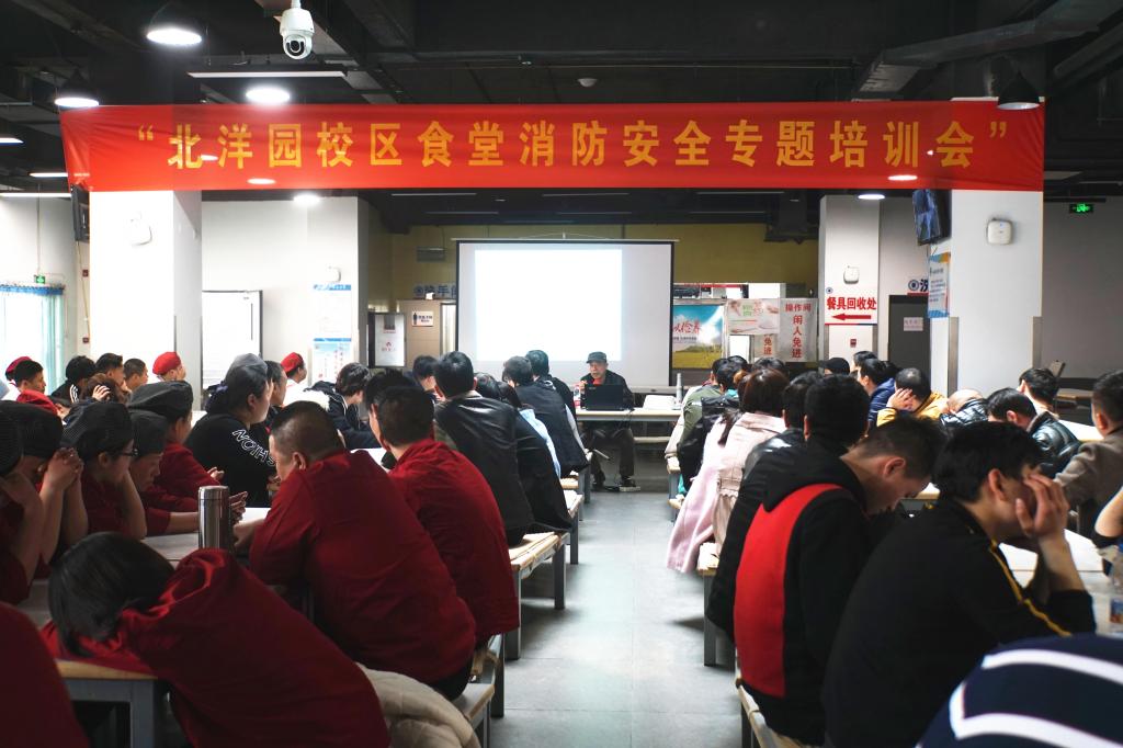 本站讯(通讯员 鹿露)为强化食堂服务人员的消防安全意识,3月18日下午北洋园校区食堂管理办公室邀请了保卫处防火科科长弓保津作为主讲,在学四食堂二楼组织开展了以“安全第一,预防为主”为主题的2019年度春季食堂消防安全培训会,百余名食堂员工参加了此次培训。