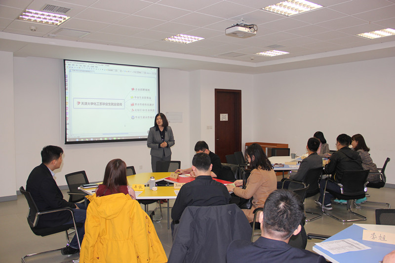 本站讯(通讯员 刘衡)3月21日下午,化工学院学工发展论坛特别迎来了教育部中国“互联网+”大学生创新创业大赛专家委员、万学教育科技集团华北区产品总监文成玉老师带来的大学生职业规划谈心谈话专题培训。化工学院党委副书记高旭东,天津大学就业指导中心唐婧亚老师以及化工学院学生工作办公室全体辅导员参加培训。