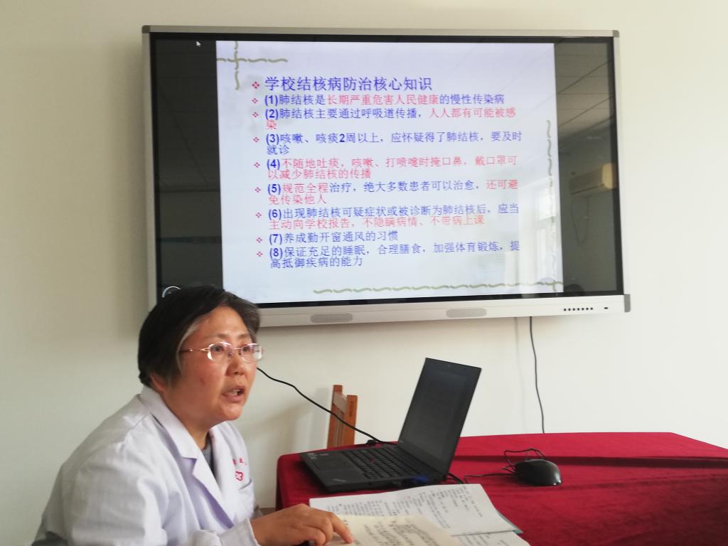 本站讯(通讯员赵春丽)2019年3月24日的世界防治结核病日,为了响应世界卫生组织的号召,提高全校师生对结核病防治的关注度,加强对防治结核病相关知识的了解,减少结核病的感染和传播,形成良好的防治社会氛围,3月22日下午校医院新、老校区均举办以“开展终结结核行动,共建共享健康中国”为主题的世界防治结核病日宣传活动。小幼医党委副书记刘津、校医院院长张长福、业务院长王龙出席活动现场。由校医院刘立娟主任为全院职工进行结核病防治的培训。刘津书记在讲话中希望要通过加强宣传力度,从理念上改变,更多的普及健康的知识,养成良好的健康理念有良好的认知,校医院承载很重的任务,面对大的群体,大家一起努力为广大师生构建健康屏障。张长福院长在讲话中表示将加大宣传力度,扩大宣传范围加强广大师生的防范意识。业务院长王龙表示将围绕宣传主题开展宣传活动,在生活当中进一步加强自我防范意识,培养文明健康的生活方式进一步增强社会责任感。