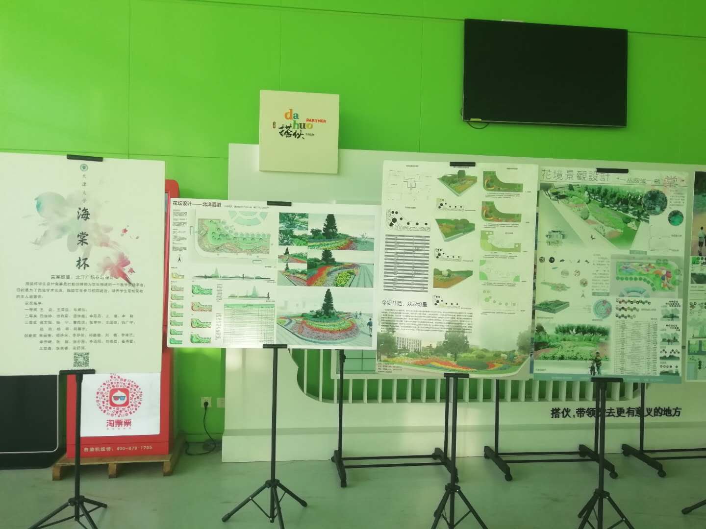 本次展览设在北洋园校区大通学生中心活动中心一层大厅,大厅宽敞明亮,以绿色为主色调,与设计竞赛获奖作品相得益彰。据悉,本次“海棠杯”学生设计竞赛以“北洋广场花坛设计”为主题,参赛对象为天津大学在校学生。参赛同学结合天津大学校园文化和北洋广场场地特点,创作出了美学内涵丰富,设计创意巧妙的众多优秀作品,最终11个小组获奖。在设计过程中,同学们更是主动参与了校园建设,增强了爱校、建校、荣校的意识,对“天大品格”有了更加深刻的理解。现场展出的获奖作品形式新颖,风格各异,体现了天大浓厚的学术氛围和天大学子优秀的设计能力和团队协作能力。