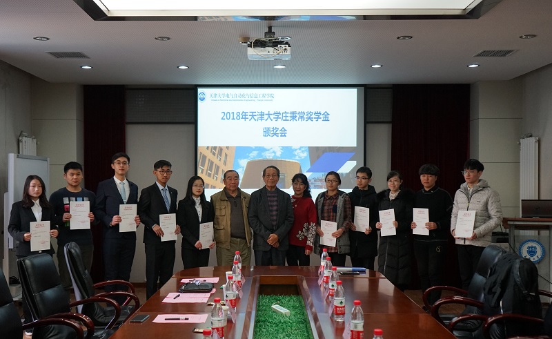 本站讯(通讯员刘岩)12月14日上午10时,天津大学--庄秉常奖学金2018年颁奖会在卫津路校区26教学楼E236会议室举行。庄秉常奖学金设立者林金将校友及其夫人、庄秉常奖学金联络人韩毓龙校友、自动化学院党委书记李继平、自动化学院副院长李昌青、校友与基金事务处副处长潘晓睿出席了颁奖大会。自动化学院党委副书记张秀娟主持颁奖大会。64届电机专业毕业生、自动化学院师生等60余人参加了大会。