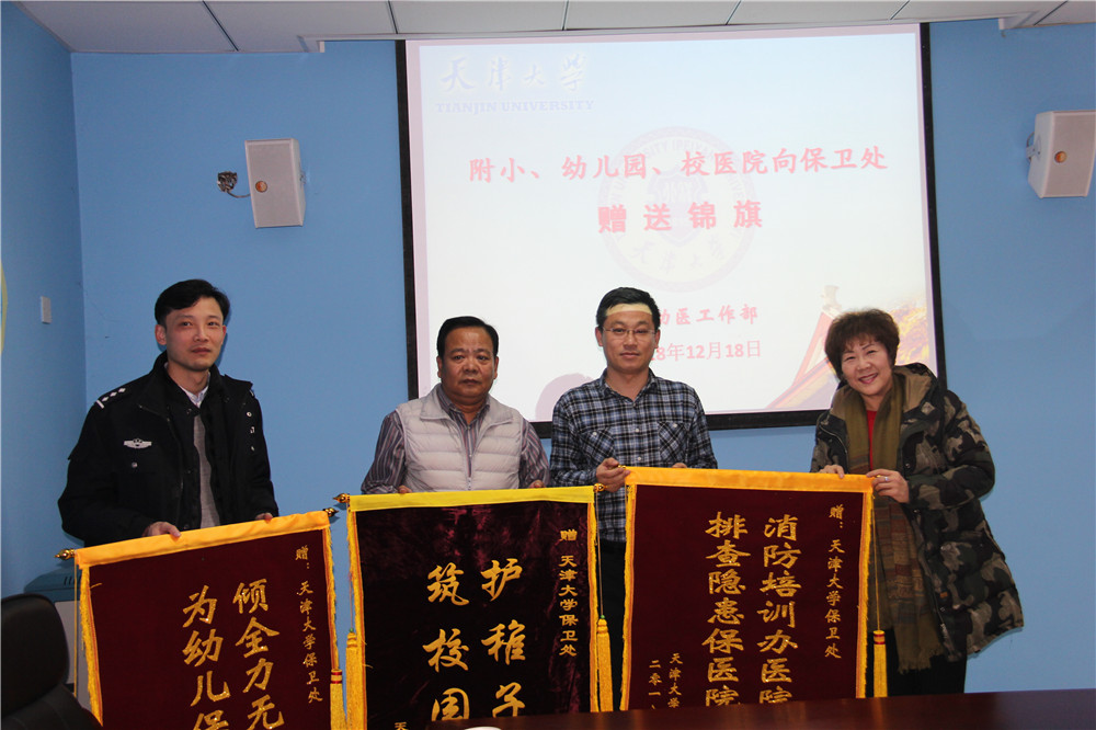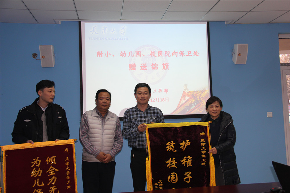 本站讯 (通讯员 王曌)为感谢校保卫处多年来对小幼医安全工作的大力支持,12月18日下午附小、幼儿园、校医院集体向保卫处赠送锦旗,谨此向一直以来重视小幼医安全稳定工作的保卫处领导及全体工作人员致以衷心地感谢。