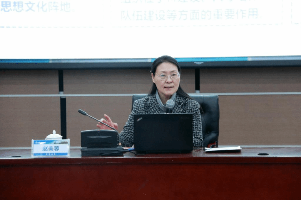校党委常委、组织部部长、统战部部长赵美蓉做了《新时代如何做好高校党建工作》的辅导报告,从新时代高校党建工作的根本遵循、实践基础和总体要求三个方面展开,详细阐释了新时代党的建设总要求和组织路线,介绍了全校党建工作调研情况,对学校党建工作优势和不足进行了分析。结合中央和教育部近期出台的关于党支部建设的文件精神,重点对我校“双带头人”提升工程和“对标争先”建设计划等意见方案进行了解读和部署。