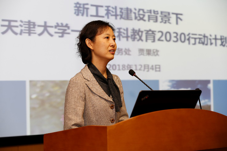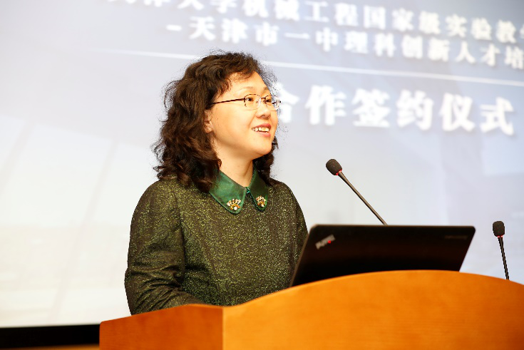 李翠松对天津大学的热情接待表示感谢。她表示,希望通过本次签约仪式能够加深天津一中和天津大学的交流和合作。希望以此为契机邀请天津大学的专家到天津一中开展讲学,充分发挥天津大学在办学上的优势和资源,共同培养国家需要的创新型人才。天津大学教务处副处长贾果欣做《新工科建设背景下 天津大学一流本科教育2030行动计划》专题报告。以新工科建设为背景,介绍了天津大学在推动国家新工科建设中所进行的改革探索和取得的卓越成效。