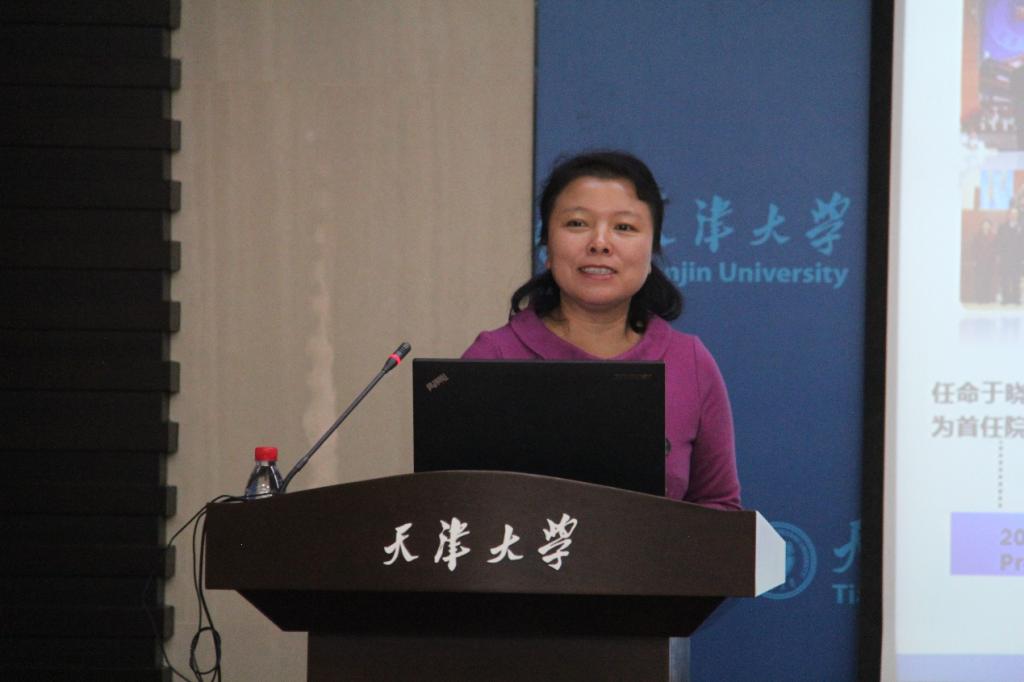 学院党总支书记张蕾介绍了学院成立六年来科技工作的发展情况。