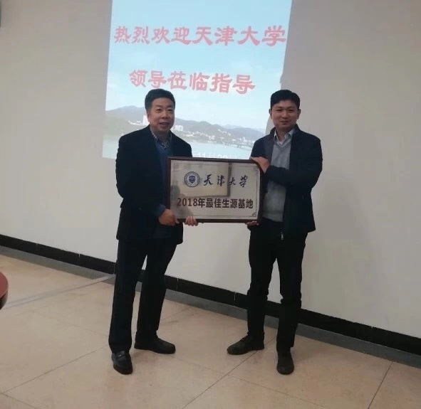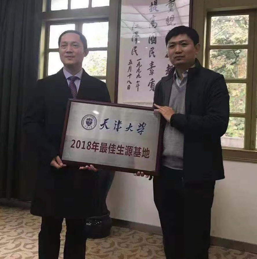 封皓向杭州高级中学授予“天津大学2018年最佳生源基地”牌匾