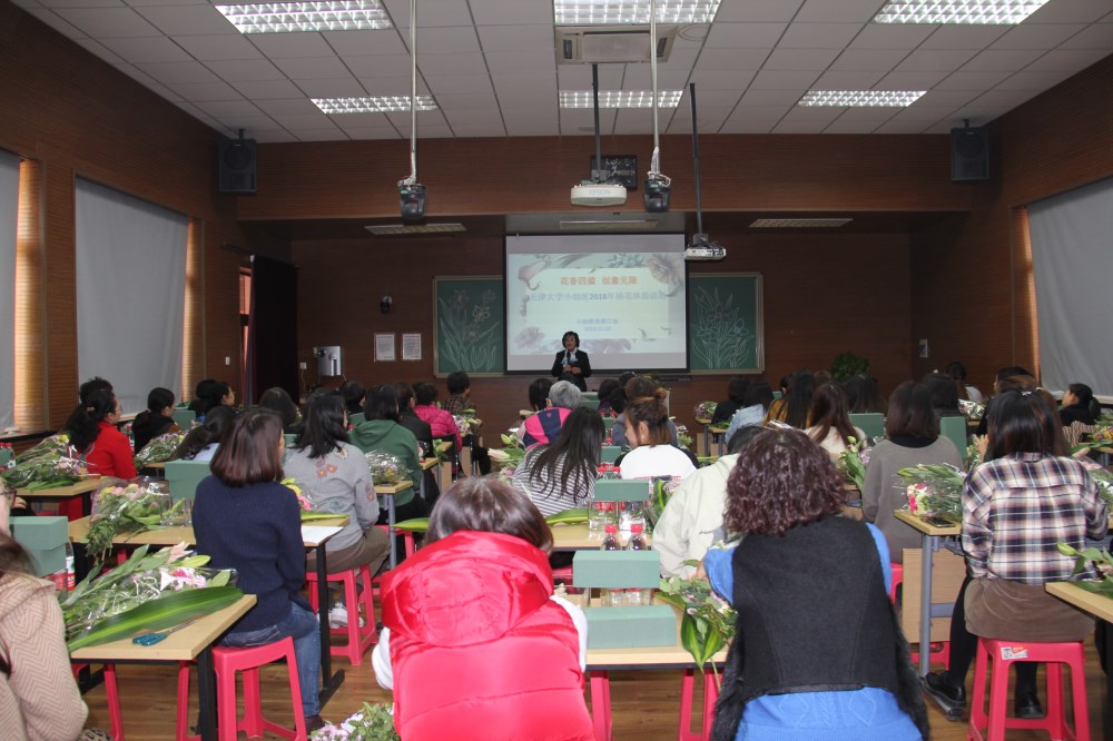 本站讯(通讯员 董玲)为全面贯彻十九大精神,深化小幼医特色文化建设,丰富教职工们的业余生活,舒缓大家工作压力,增强教职工审美艺术、动手能力和相互之间的交流、团结及凝聚力,11月20日下午,小幼医党委部门工会在天大附小电化教室举办“花香四溢创意无限”艺术插花活动。小幼医党委书记赵翠云、副书记刘津,工会主席张文茹、副主席王端等所有党委委员和工会委员与200多名教职工一起参与到本次活动中。活动由工会主席张文茹主持。