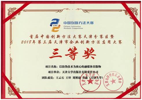 由天津大学出版社副社长王云石带领的天津大学出版社项目团队,凭借自主知识产权项目“以防伪技术为核心的融媒体出版物”参赛,经过理论测试和项目展示两个环节的激烈角逐,脱颖而出,荣获本届大赛三等奖。