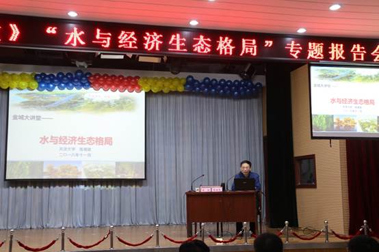 练继建教授应邀为陕西省潼关县百余名正科级及以上干部作了《水与经济生态格局》的前沿技术辅导报告。练教授以“圣人之治,其枢在水”为引子,从楼兰古城到海绵城市,从罗布泊的消失到塔克拉玛干沙漠的形成,从水三线到黄河的前世今生,从焦裕禄与生态城到在那遥远的地方,通过生动的故事分析了水与经济发展的关系、水与地球生态的关系。练教授的报告既有专业数据又有幽默故事,既引经据典又旁征博引,既高屋建瓴又深入浅出,为在场的干部上了生动的一课。“水光风力俱相融,星象烟云喜共和”,报告最后,练教授指出水风光互补能源模式将改变中国的能源格局,这对于打好污染防治攻坚战、提升生态文明、建设美丽中国具有重要意义。