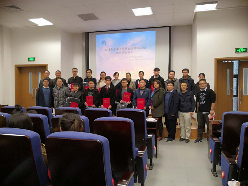 本站下(通讯员 商闯)11月10日,“天津大学第十八届博士生学术论坛——理学院博士论坛”在天津大学北洋园校区第三十二教学楼举行。研究生院督导员张天永和贾启芬、理学院院长卢小泉、党委副书记王作金、物理系主任米文博、化学系主任雷胜宾、物理系副主任柯红卫以及来自理学院的20余名教师,100余名研究生参加了本次论坛。论坛围绕“新型功能材料的设计、制备与物理化学性质”的主题,针对参会报告中涉及的不同学科内的科研问题进行了深入探讨。