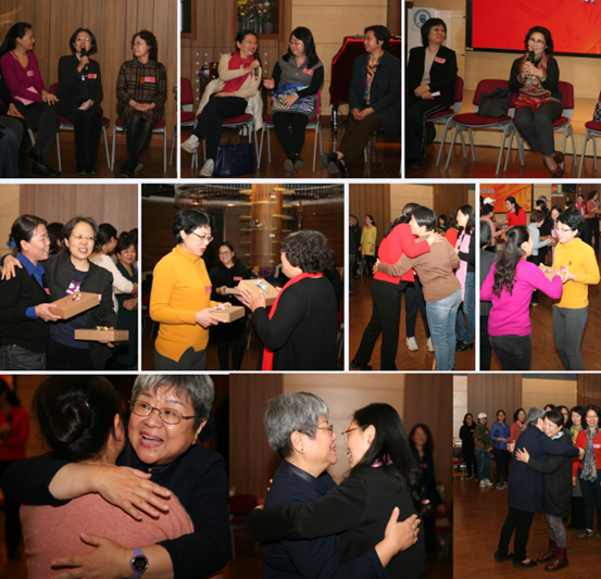 近三个小时的团体工作坊,女教授、女干部们专注聆听和表达,以开放坦诚的心态积极投入到各个环节的活动中来。樊富珉首先引导女教授、女干部们以手动操、工龄圈等热身活动形成若干小组,然后通过真我角色练习评估自己在乎的重要角色,借助家庭金鱼缸的绘画探讨家庭关系和支持来源,根据工作价值探索的书写、交流进一步澄清工作带来的影响。最后,大家围坐在一起分享感受相互道谢,并一一与樊富珉老师拥抱道别。