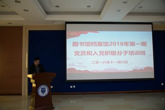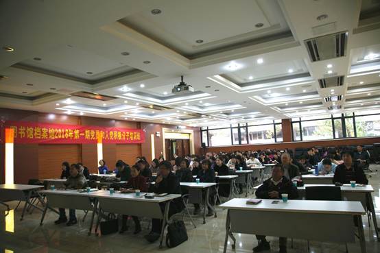 本站讯(通讯员 吴楠)为深入学习贯彻习近平新时代中国特色社会主义思想,进一步推进“两学一做”学习教育常态化制度化,根据学校党委关于党员和入党积极分子教育培训的有关要求,11月6日下午,图书馆档案馆党委、分党校在卫津路校区科学图书馆一层报告厅,举办了“党员和入党积极分子培训班”,两馆党委委员、在职党员和入党积极分子、退休老党员、馆员70余人参加了培训班。