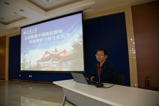 培训班首场报告由两馆党委委员、档案馆馆长韩宝志作题为《从校歌看中国高校群体 家国情怀的文化自觉——以北洋大学校歌诞生为例》的报告。报告主要围绕大学校歌的诞生及演变、北洋校歌诞生的文化自觉——从“写实”到“载道”等内容进行了生动的讲解,报告例举了丰富实例和数据资料,精选了有代表性的高校校歌进行了现场播放和阐释。通过学习聆听报告,使大家对校史文化有了新的认识和思考,增强了爱国、爱校、爱岗敬业的情怀。