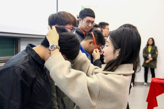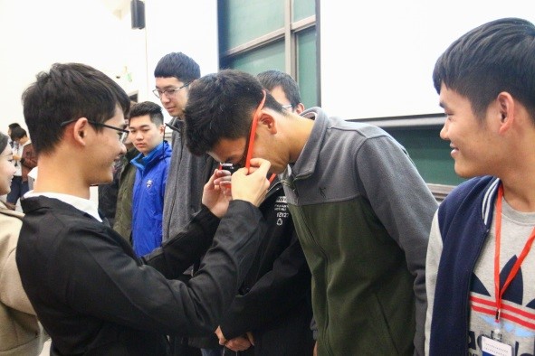 会上,学生资助管理中心主任助理李星介绍了学校“五位一体”资助育人格局和校内联盟工作开展情况,讲解了联盟关于志愿者招募及志愿活动有关事项,并详细介绍志愿者注册流程及志愿汇APP各项功能。李星为校内首批资助志愿者代表佩戴志愿者工作证。