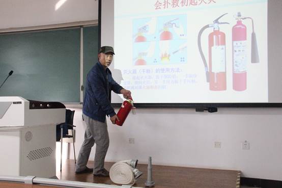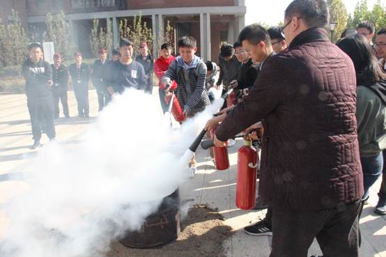 讲座结束后,所有参会师生到43楼南门广场开始进行灭火器的操作演练。在保卫处老师的操作演示下,所有师生都认真的完成了灭火器的使用演练。