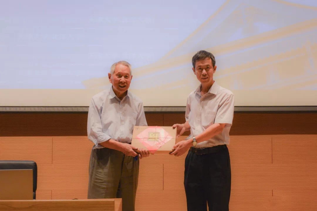 机械工程学院副院长曹树谦教授向陈院士送上纪念品并合影留念。曹树谦表示,他作为陈院士的学生,硕士和博士期间受到了陈院士的耐心的指导和帮助,受益匪浅。希望同学们谨记陈院士提到的“探索式学习”,主动发现问题,尝试解决问题,培养探索精神和创新能力,积极投身天大发展和国家建设。