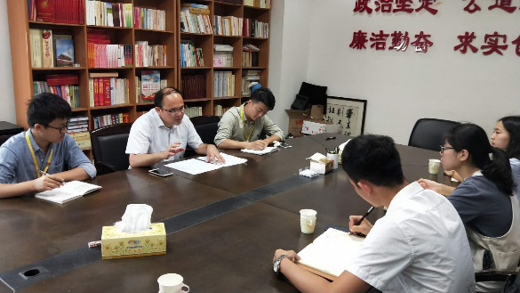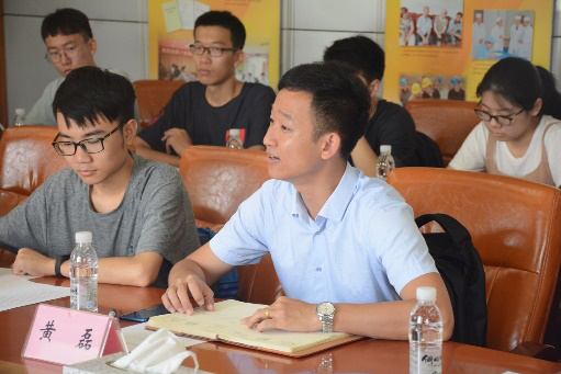 7月23日上午8:30,来宾市合山市组织部部长李波与实践队代表座谈,介绍了合山的人才工作和转型发展情况。