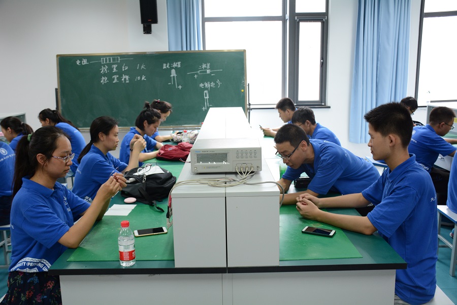 本站讯 7月18日,天津大学科学营开展创新性科技实践活动。本次活动共分为电工电子实习与“搭筷子”比赛两部分,将科学理论与实践紧密结合,旨在开拓营员视野,培养营员动手能力及团队合作能力。