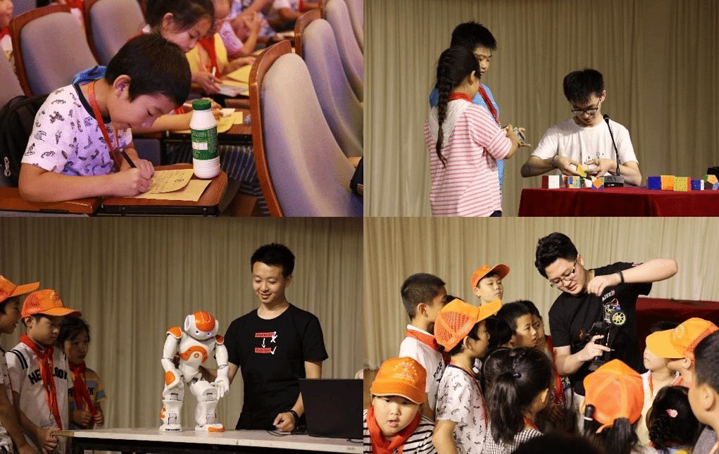 下午的活动中,孩子们观看天津大学宣传片和《国之大学》纪录片,感受大学文化的独特魅力。“我与大学生面对面” 分享沙龙给孩子们提供了和大学生面对面对话的机会,除了聆听哥哥姐姐们的成长故事,小朋友们也畅谈自己的人生梦想,天津大学学生会的成员准备了信纸和信封,小朋友们可以在信纸上写下对一年后的自己的期待,装入信封写好地址,一年后由天津大学学生会邮寄给自己。随后开展的“小发明大梦想”创新实践活动,以动手动脑为重点,让孩子们在实践中领悟科学原理,神奇的魔方展示、充满科技元素的机器人表演以及炫酷的动力车队激起孩子们对科技创新的探索,希望他们在实践中体验创新的乐趣。