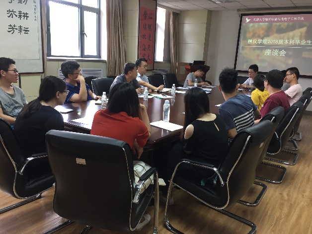 参会同学们纷纷发言,分享了各自大学期间生活学习的体会与收获,畅谈人生规划,同时为学院的发展献计献策,如:增加专业选修课的数量和种类,利用网络平台推送课程信息,为学生选课提供更多的机会和引导;改进毕业设计选题环节,丰富毕设课题相关介绍并优化信息传达机制;建立实习、招聘信息的分享平台,利用校友资源尽可能为学生提供更多、更优质的实习机会;加强学生创新实验室的建设,让创新实验室的资源辐射到更多的学生;加强对合办专业学生的培养和教育,增进其与天大师生之间的了解和交流;采用翻转课堂、线上实时互动等教学手段,丰富专业课程的授课形式;加强课程的助教岗位建设,助力提升教学效果;开设更多的人文类课程,培养学生通识能力,提升综合素质;进一步加强高低年级学生的沟通交流,做好学院的文化传承。参加座谈会的学院领导、各系主任对学生们提出的问题进行了详细的解答和回应,并向同学们介绍了学院“大类招生”等相关计划,对于现场无法解决的问题,也表示将在接下来的工作中继续探索和改进,更好服务学生们的成长成才。