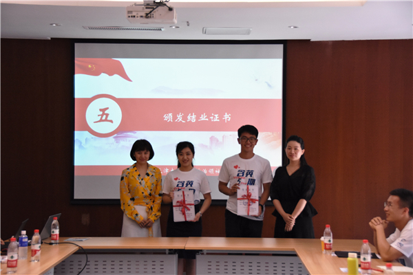 本站讯(通讯员 席皓格)6月21日,天津大学青年政治领袖培训“含英班”五期学员机关部处实践锻炼终期答辩和结业仪式在北洋园校区行政楼B301会议室举行。党委教师工作部副部长王娟、党委学生工作部副部长柳丰林、党委学生工作部席皓格、刘超担任实践锻炼终期答辩的评委;研究生招生办公室主任孙鹤、党委教师工作部副部长王娟、党委学生工作部副部长柳丰林出席结业仪式。结业仪式由“含英班”五期班长周淮娇主持。