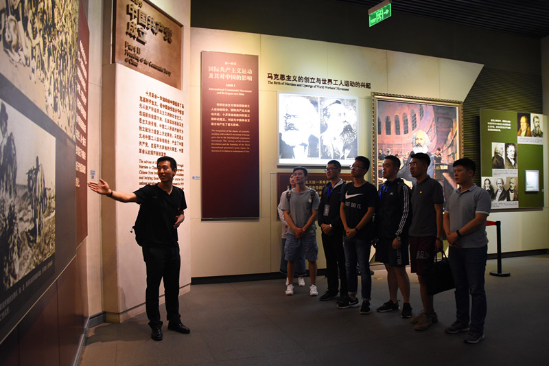 在中共二大会址纪念馆内,实践队队员杨益帆饱含热泪,激动地向大家说道:“96年前,这里诞生了首部《中国共产党章程》,从此,一代又一代中国共产党人在这面信仰的旗帜下,抛头颅、洒热血,为党和人民奉献一切。”步入党章历程厅,玻璃展柜内陈列着的是中国共产党自诞生以来所产生的所有党章或党章修正案。队员们用指尖轻触屏幕,“泛黄的纸页”便在眼前依次展开。“之前爷爷曾给我讲述他冒着生命危险寻找游击队参军的故事,对那个年代我们党对群众的感召力,我觉得很遥远。今天,沿着党章按图索骥,感知中国共产党走过的路,我终于理解了。”实践队队员史文浩感慨道。