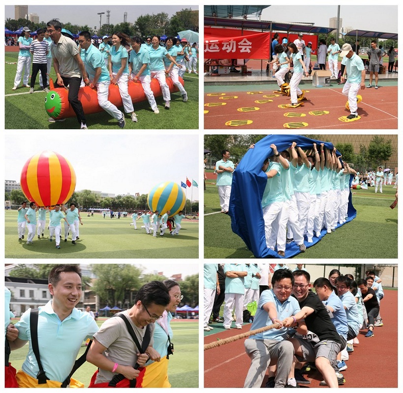 本届教工趣味运动会安排了拔河、滚滚向前、趣味连体裤竞速、运转乾坤、毛毛虫竞速5个集体项目以及快乐大脚丫竞速的个人项目。每个项目都深受老师欢迎。如:趣味连体裤项目,5名老师穿上裤腿缝制在一起的彩色大背带裤,你伸左脚我伸右脚,忙得不亦乐乎。运转乾坤项目要求8个老师举着直径4米的大气球折返跑,抵达终点的瞬间现场一片欢呼。参加毛毛虫竞速项目的老师们用手拎起毛毛虫的身体,整齐地喊着“一二一二、左右左右”的口号,大步跑向终点。