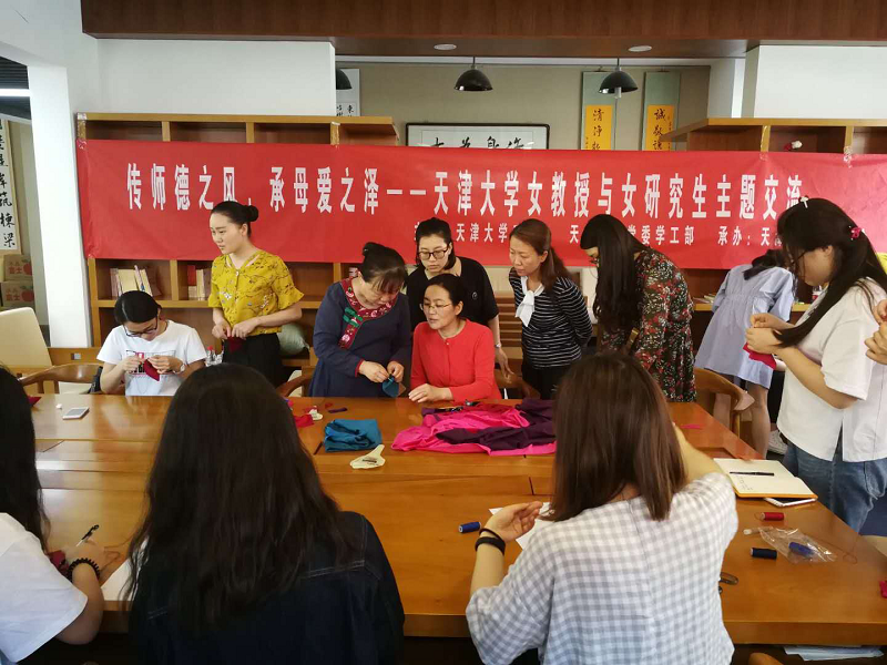 5月14日,“师生艺术工坊”活动在北洋园校区建工学院海棠书屋举行。“网红”女教授建工学院戚蓝老师带领女研究生们制作了精美的布艺手工,同时传授了教书育人的心得。她认为师与生之间最理想的关系是亦师亦友、严爱相济,要把每一个学生看作自己的孩子,付出真心就会收获学生真挚的爱。校工会常务副主席马桂秋,学工部副部长李霞,建工学院党委副书记、工会主席李京霖等在现场与学生们一起动手制作、互动交流。