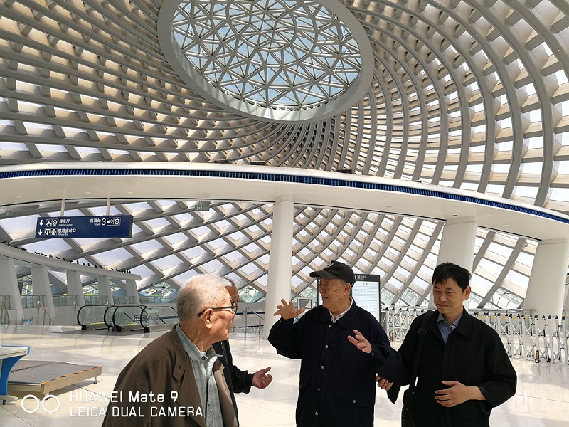 “胜日寻芳泗水滨,无边光景一时新”。老同志们乘车首先来到由天大陈志华教授团队参与设计的,世界最大、最深的全地下高铁站房,也是全球首例单层大跨度网壳穹顶钢结构工程——于家堡高铁站。地处于家堡金融区的高铁站因出入口都设在公园内,又被称为“公园里的火车站”。看到外观新颖大方的穹顶和宽敞明亮的大厅,了解到从于家堡到天津站只需22分钟、12元钱,老同志们在欣喜愉悦之余,也感受到了更为快速便捷和更加人性化的现代化交通运输服务。有的老同志平时已很少出门,参观过程中激动地说:“这是我见过的最美的车站了!”