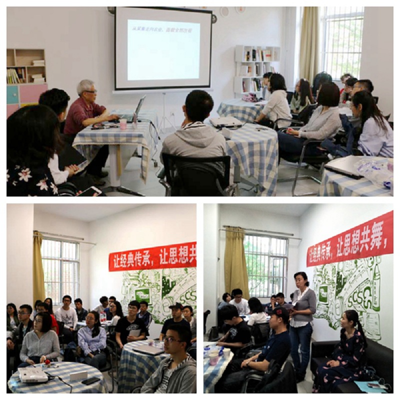 与会同学自发地分成五个小组,在事先阅读的基础上,每组由一个代表进行阅读分享,每位分享者都结合幻灯片进行简短的分析和提问。