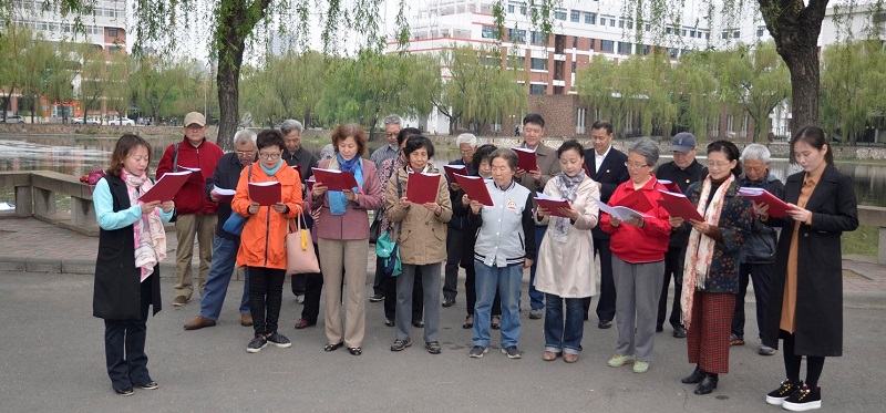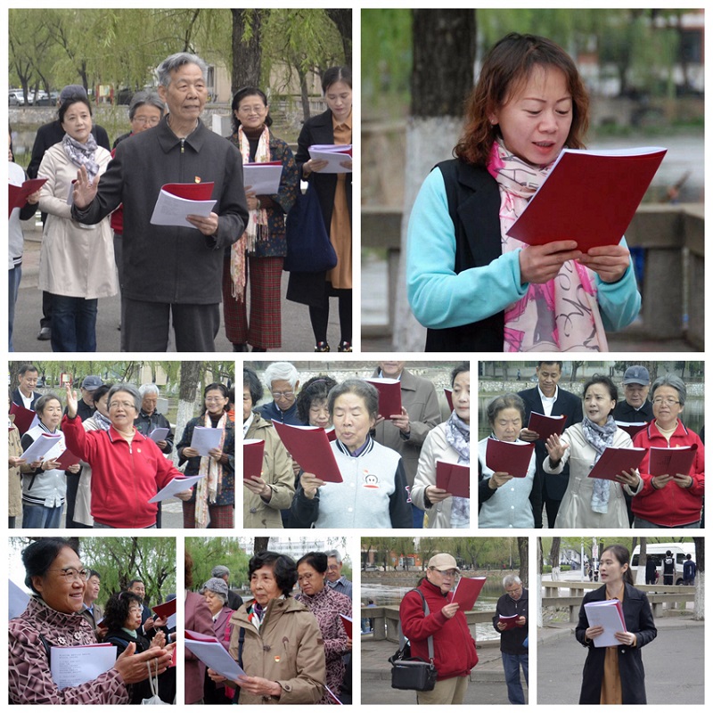 清晨,迎着春日的朝阳,老同志们与离退休工作处工作人员共同在爱晚湖边进行了第一站悦读快闪活动,所诵读内容为部分精选的毛泽东诗词,如《沁园春·长沙》、《采桑子·重阳》、《七律·长征》《七律·人民解放军占领南京》等。