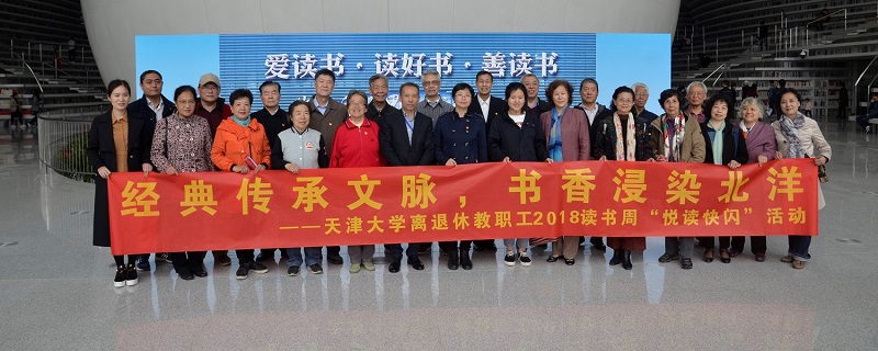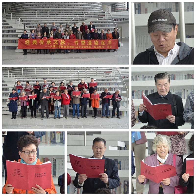本站讯(通讯员 王小轩) 4月23日是第23个世界图书与版权日。当日,天津大学离退休工作处为进一步贯彻落实党的十九大报告提出的“加快建设学习型社会”的要求,组织“经典传承文脉,书香浸染北洋”2018读书周系列活动之“悦读快闪”最佳党日活动。在这一天,组织老同志走进校园、走上交通车、走入公园,一起诵读经典,共享悦读的快乐;在这一天,组织老同志走进天津最美图书馆,选一本自己喜欢的书,开始悦读之旅;在这一天,组织老同志传递书籍,共享悦读,让思想共舞,让书香致远;在这一天,组织老同志,关闭手机一小时,引领家人,一起悦读,让读书成为一种习惯和风尚,共同建设书香天大。