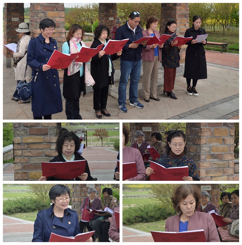 “迟日江山丽,春风花草香。”迎着明媚的春光,老同志们来到了临港湿地公园,在和煦的春风中开始了第三站诵读活动。