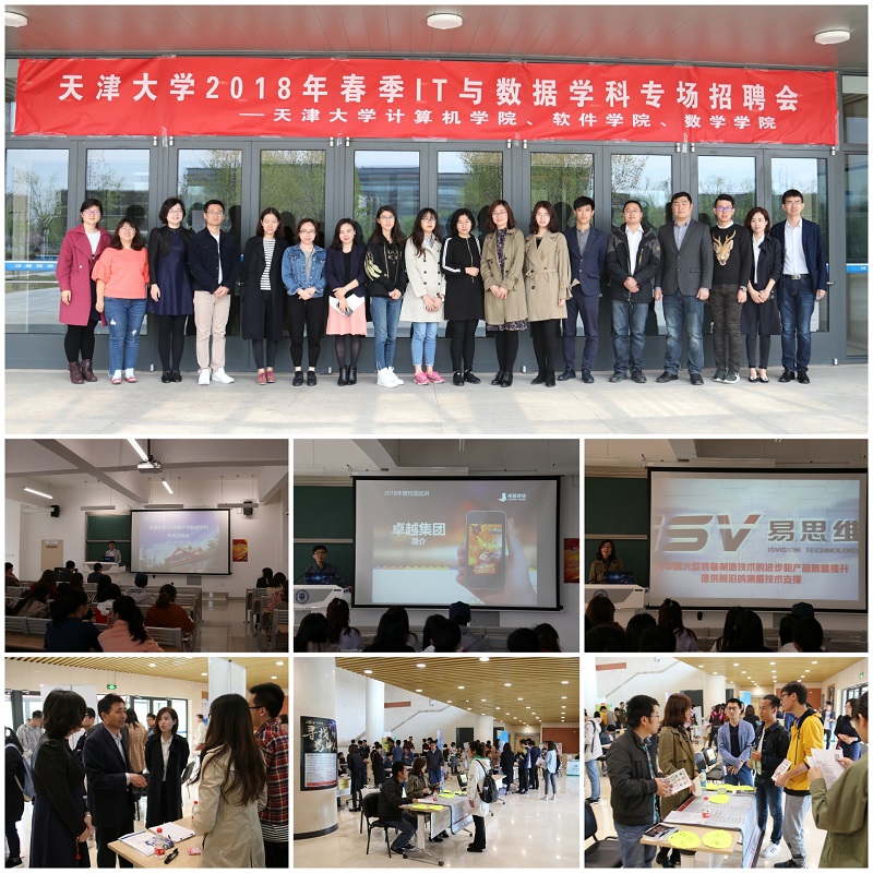 本站讯(通讯员 冯天强 孙媛 吴自强)为充分做好2018年就业工作,进一步拓宽毕业生就业渠道,搭建学生就业与实习交流平台,计算机学院、软件学院、数学学院于4月17日在北洋园校区第55教学楼举办“天津大学2018年春季IT与数据学科专场招聘会”。京东方、软通动力、易思维、中力防雷、国家动漫产业园等十余家用人单位到校招聘宣讲,天津大学计算机学院、软件学院党委书记花建锋,学工部副部长、计算机学院党委副书记李静松,软件学院党委副书记史慧,数学学院党委副书记韩旭出席招聘活动,三个学院的全体辅导员和近两百名学生参加了此次招聘会。