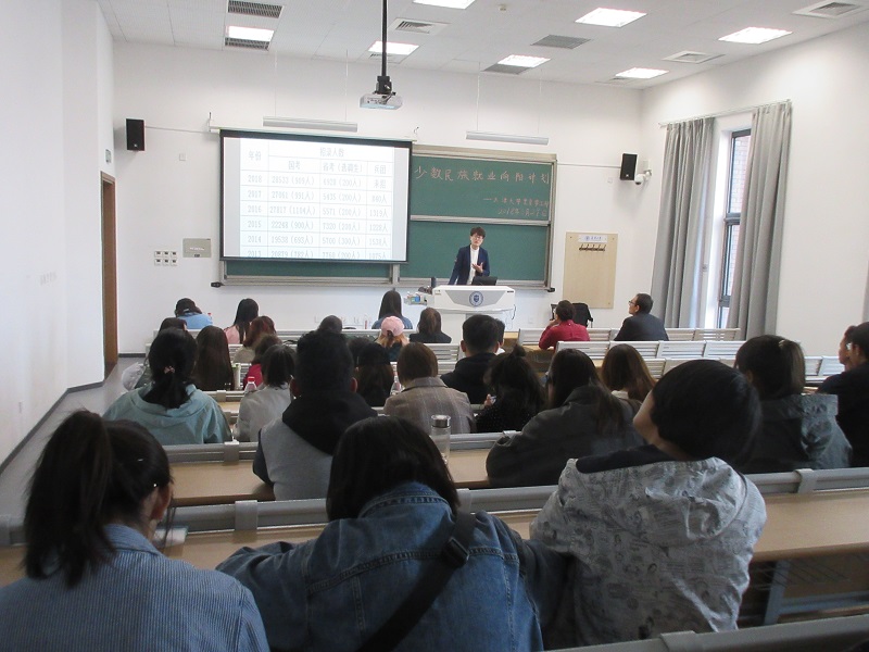 本站讯(通讯员 唐婧亚 艾丽 朱俊榕)推动少数民族地区建设,促进高校少数民族青年学生扛起地区振兴大旗,成为民族地区发展重要骨干力量,是贯彻落实国家西部大开发战略和全面建成小康社会的现实需求。为此,天津大学就业指导中心联合中公教育,开展了"少数民族学生就业向阳计划",针对少数民族同学就民族地区政府机关招录政策及解题技巧进行了梳理和解答。50余名来自新疆、西藏及其它少数民族地区的同学,报名参加了此次活动。就业指导中心就业教育活动负责人唐婧亚老师出席了活动。