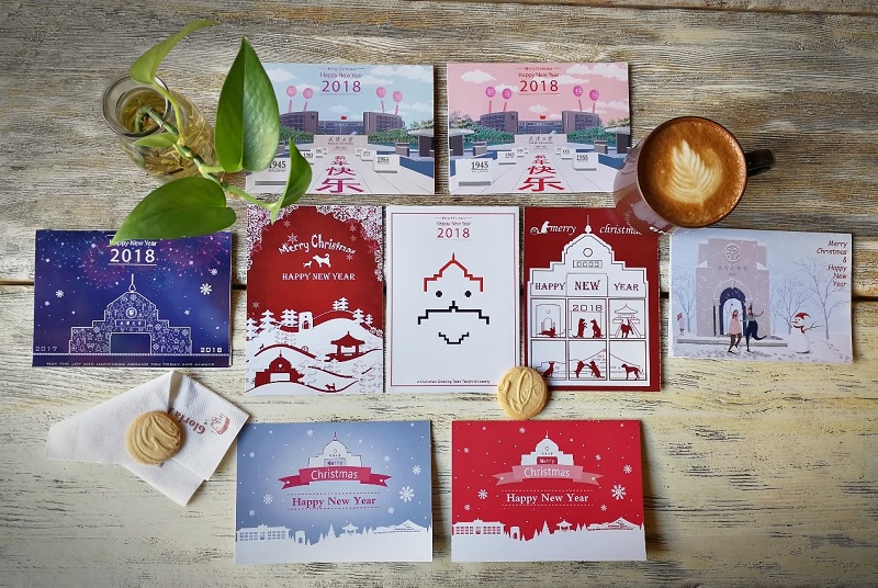 整套贺卡分为5个款式。第一款是老校区系列,将天津大学卫津路校区建筑元素与节日气氛相融合,营造温馨的天大景色,相信每一栋建筑都曾留下你美好的天大回忆,这一系列共推出圣诞红、西瓜红、高级灰和炫彩蓝四种颜色;第二款是新校区系列,天津大学新校区的标志性建筑元素,中轴线的表达方式,满满的仪式感,节日气氛装饰下的天大别具特色;第三款是北洋亭雪人,在美丽的冬日,在洁白的校园里与小伙伴手拉手堆一个小雪人;第四款利用天大建筑轮廓,构成可爱、简洁的圣诞老人,在寒冷的冬天送去暖暖的爱;第五款是狗狗送祝福,运用天大校门的轮廓形成窗口的形式,窗子中隐约显现天大标志性建筑的身影。