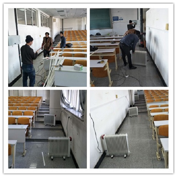 为解决卫津路校区24教学楼考研教室温度不达标的问题,确保为广大考生提供舒适的考场环境,能源管理科利用20-21日两天,在24教学楼的10间教室安装了40个电暖气保证了各个教室的温度。