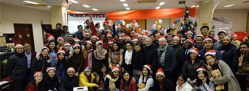 本站讯(通讯员 戴军)12月15日,学校在卫津路校区学四食堂举行了2018年外国专家及交换生新年联欢会。参加人员包括80余位外国专家及其家属、港澳台交换生、留学生、学生大使和相关工作人员。校长助理肖松山莅临联欢会并对所有参会的外籍嘉宾致以新年问候。人事处和国际处相关负责同志参加联欢会,与外籍专家欢聚一堂,互送祝福。