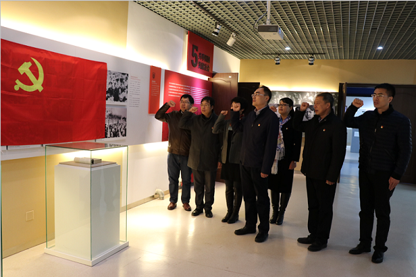 会议的第一项议程是参观校史馆,回顾校史,并重温入党誓词。赵欣说,数学学院党委第一届委员会刚刚成立,之所以选择在校史馆召开会议并重温入党誓词,就是为了进一步深入学习领会党的十九大精神,就是为了不忘初心、牢记使命。习近平总书记指出“中国共产党人的初心和使命,就是为中国人民谋幸福,为中华民族谋复兴。”某种意义上讲,校史就像天大人的“红船”,其中充满开拓创新、奋斗拼搏、爱国奉献的故事与精神。校史告诉我们北洋大学就是当时的世界一流大学,天大人的“初心”之一就是“世界一流”、“使命”之一就是“建设一流”。因此,建设“中国特色、世界一流、天大品格”的数学学院就是这个初心和使命在数学学院党委的具体体现之一。