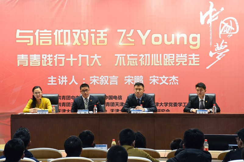 本站讯(通讯员 赵远)为响应进一步推动“与信仰对话”主题活动的深入开展和品牌深化的号召,11月25日,天津大学法学院团委书记、挂任贵阳市人民政府副秘书长宋叙言,天津大学科研院科研基地科副科长、挂任甘肃省宕昌县沙湾镇大寨村第一书记宋鹏和优秀校友宋文杰做客共青团中央“与信仰对话 飞Young中国梦”专题报告会,与学生们分享了他们在西部工作中的经历和收获。
