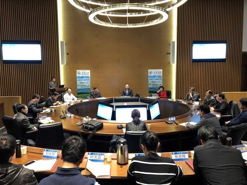 本站讯(通讯员 胡宏远)为学习贯彻党的十九大精神,落实“全国高校思想政治工作会议”精神要求,探索新时代大学生思想政治工作新思路、新方法,11月22至23日环境学院举办了大学生思政工作专题学术研讨会。天津大学副校级领导、仁爱学院党委书记谭欣,党委常委、组织部部长马春有,党建督导员乔建生,党委学工部部长王寒以及化工学院、马克思主义学院、精仪学院、经管学部、环境学院的领导老师20余人参加了会议。此外,会议还邀请到中共天津市委党校哲学教研部副主任万希平、上海交通大学和西南大学党委学工部、研工部及二级学院相关负责人等6位老师参会。
