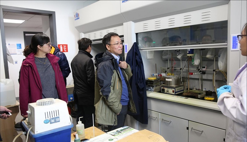 检查小组一行对实验室的用电规范、仪器设备的报废和回收、危险化学品的储存及使用、化学废液废料处理、实验室卫生环境等进行了专项检查。