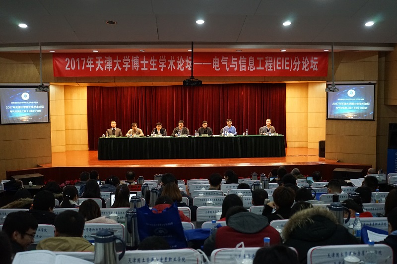本站讯 11月17日—18日,由天津大学研究生院主办,电气自动化与信息工程学院承办的2017年天津大学博士生学术论坛-电气与信息分论坛在天津全行滨海会议中心顺利举行。天津大学研究生院综合办主任卢铮松、自动化学院副院长孟庆浩教授、中国电子学会总部党委书记张宏图、南开大学方勇纯教授、自动化学院部分教师以及120名博士生参加了论坛。