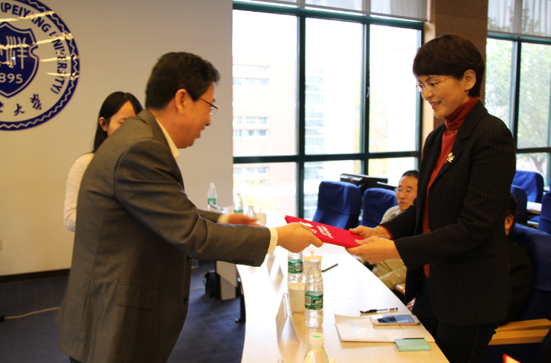 马春有代表学校对各位领导和专家的到来表示热烈欢迎,介绍了天津大学在激励科研人员积极承担国家重大科研任务、潜心从事科研工作和建设一流研究团队方面的政策举措。秦媛介绍了“国家质量基础的共性技术研究与应用”重点专项申报相关情况、管理要点、实施方案注意事项。马春有为项目专家桂卫华、叶声华、中国计量科学研究院副院长宋淑英研究员、天津市计量监督检测科学研究院副院长田勇研究员、浙江理工大学机械与自动控制学院副院长陈本永教授、清华大学曾理江教授、上海交通大学颜国正教授、北京信息科技大学祝连庆教授和天津大学财务处副处长魏欣颁发了专家聘书。